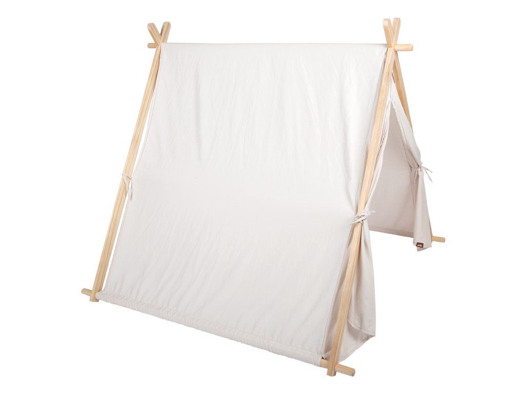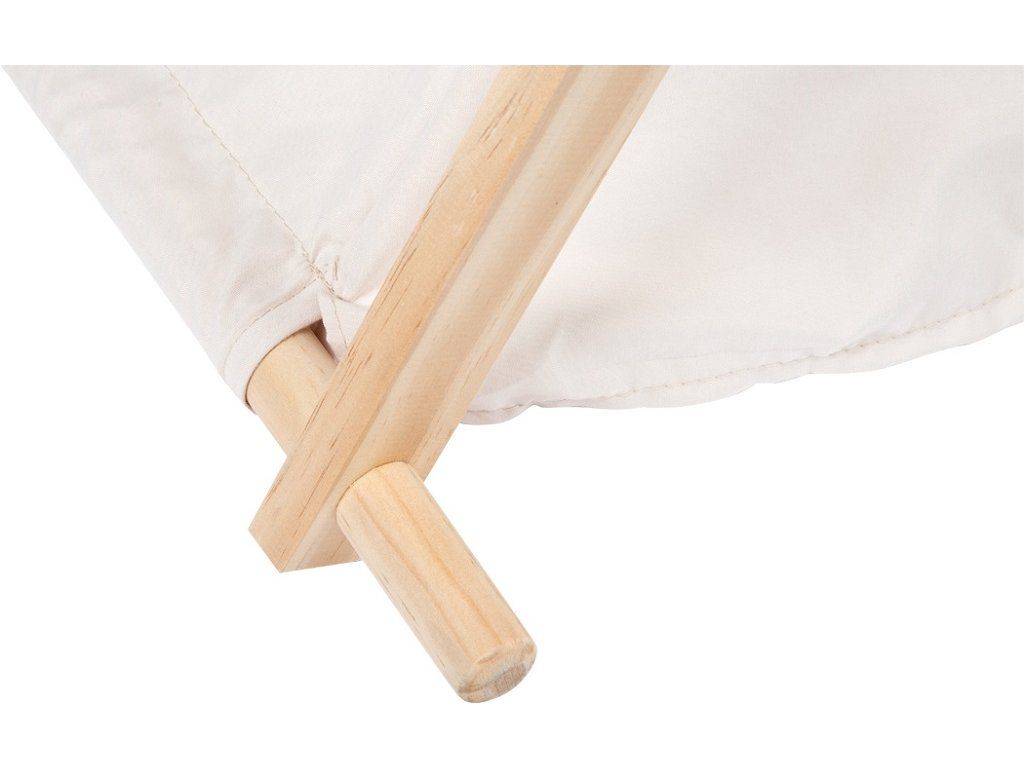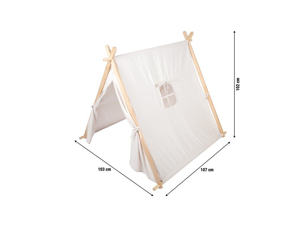 Hrajte sa, snívajte, odpočívajte. Tento štýlový herný stan pre vnútorné použitie z pevného dreva a kvalitnej látky je dokonalým útočiskom pre nápaditú a kreatívnu hru v detskej izbe. Robustná drevená konštrukcia a jemný látkový poťah vytvárajú útulné miesto na hranie, čítanie i maznanie.Bočné okienko prepúšťa dostatok svetla, zatiaľ čo zrolovateľný vstup umožňuje otvorený prístup dovnútra. Stan sa tak ľahko premení na tábor pre malých dobrodruhov, domček pre bábiky a plyšáky alebo pokojný čítací kútik.Moderný dizajn s jemnými farbami sa hodí do každého interiéru a dodá detskej izbe hrejivú atmosféru. Vďaka mnohým možnostiam využitia sa tento herný stan rýchlo stane obľúbeným miestom všetkých malých objaviteľov. Hlavné vlastnosti: skvele sa hodí do akéhokoľvek interiérukrásny doplnok každej detskej izby alebo hernebočné okienko pre možnosť nahliadnutia vonDodatočné parametre
