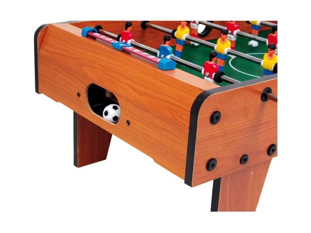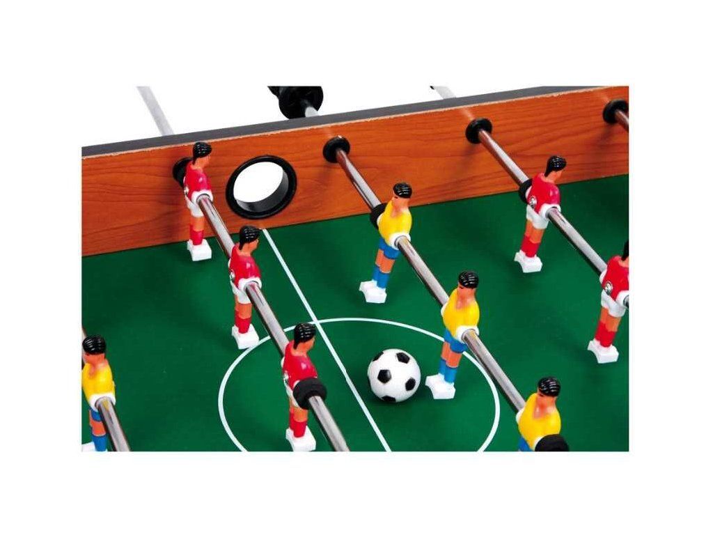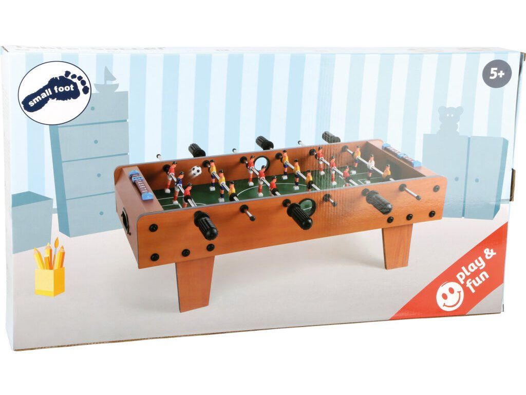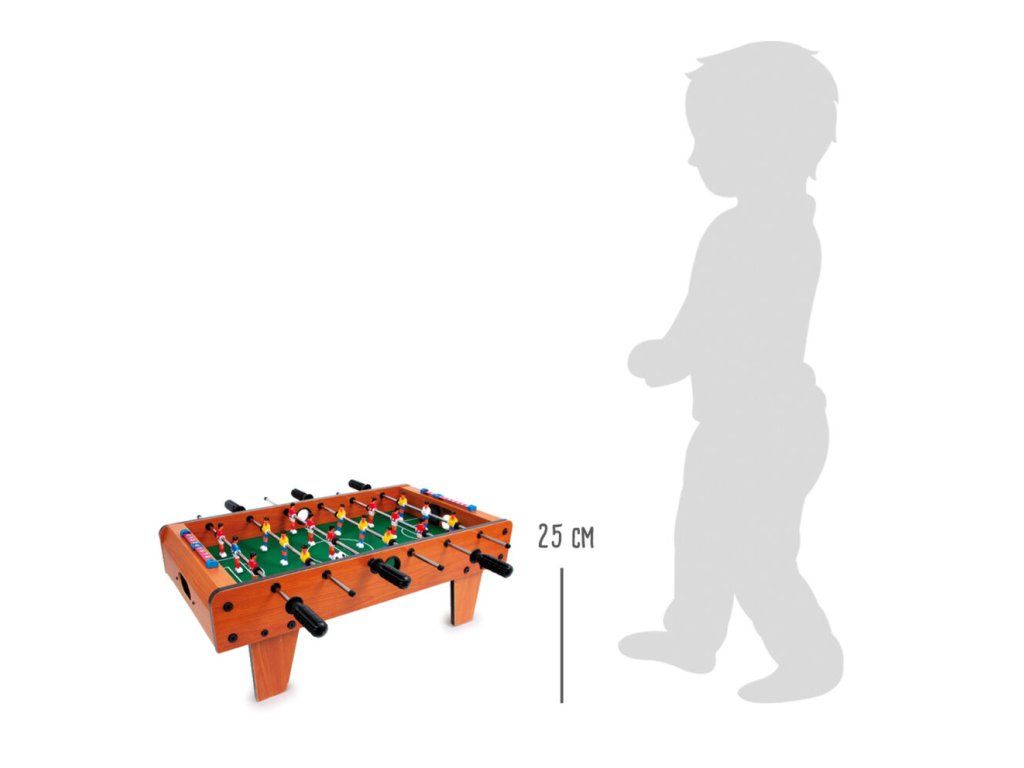 Poškodený obal. Nový tovar bez závad. Robustný stolný futbal, ktorý je možné flexibilne hrať na každom stole. Na svoje si prídu malí aj veľkí futbaloví fanúšikovia. Rýchla hra trénuje koordináciu ruka-oko a prináša veľa zábavy – taký je stolný futbal. V balení nájdete 2 ks loptičiek. Hračka je vyrobená z lakovaného dreva. Futbal je vybavený počítadlami gólov. Hlavné vlastnosti: trénuje koordináciu ruka-okovrátane 2 loptičiekpočítadlo gólovrozmery zeleného ihriska 60x34 cmDodatočné parametre