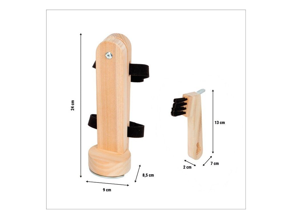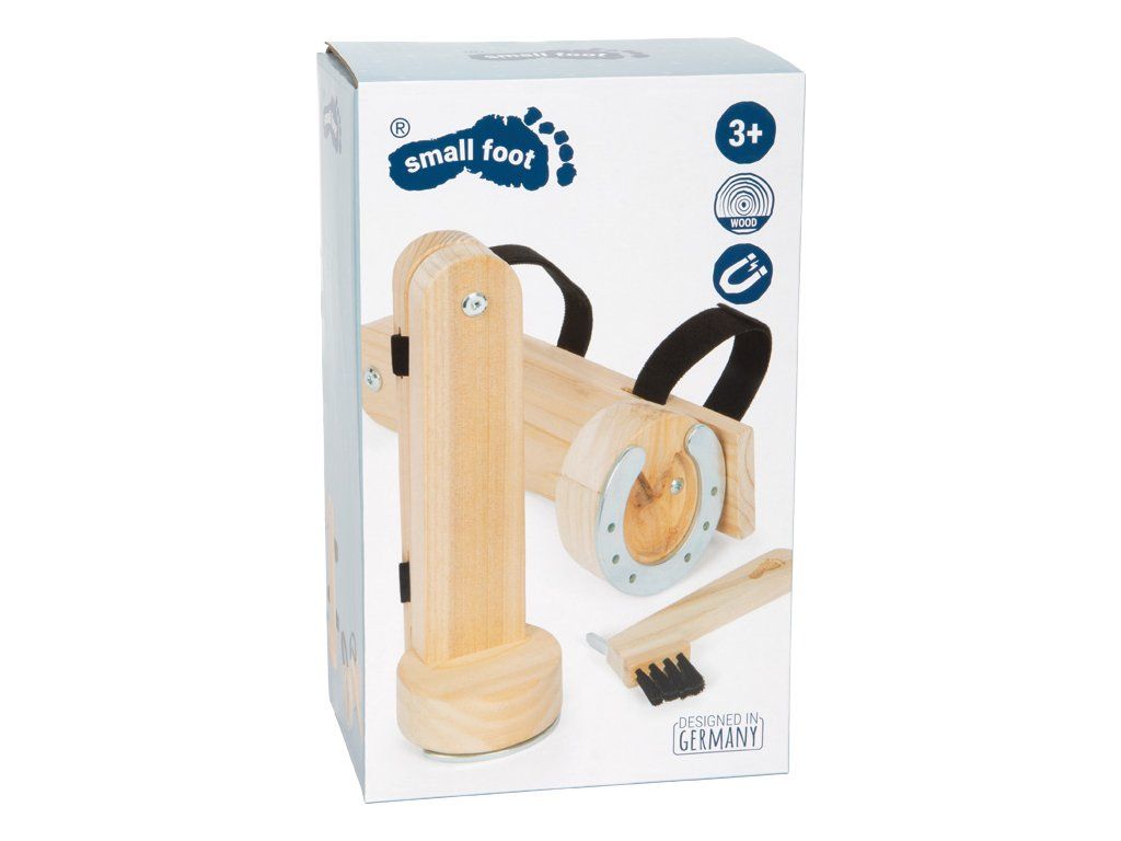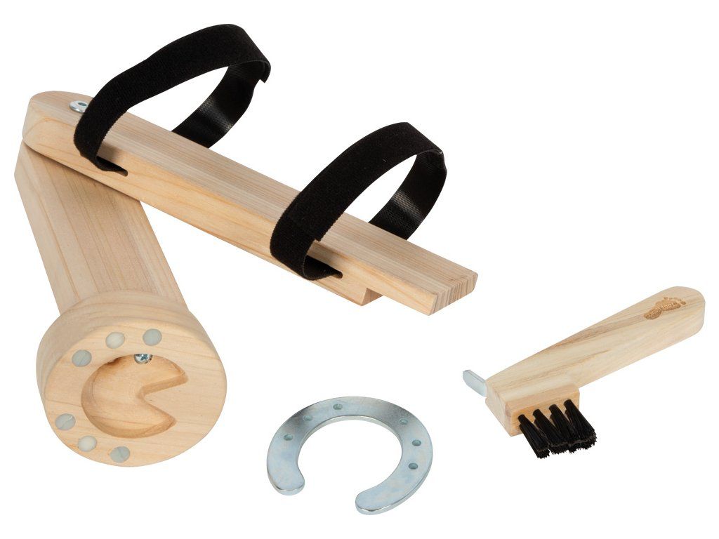 Sada pre starostlivosť o kopytá, ako v skutočnej stajni. Táto premyslená sada doplnkov posúva hranie s koňmi na novú úroveň. Obsahuje dve drevené kopytá (ľavé a pravé), ktoré možno pomocou suchých zipsov ľahko pripevniť k hobby koňom, dreveným alebo plyšovým koníkom, ale aj k iným predmetom, napríklad k nohám stoličky. Vďaka pohyblivému prevedeniu môžu deti realisticky napodobňovať starostlivosť o kopytá. Magnetické podkovy je možné jednoducho zložiť a znovu pripevniť, čo umožňuje hru na podkovára. Nechýba ani drevený háčik na čistenie kopýt, ktorý dopĺňa autentický zážitok z hry. Sada otvára priestor pre nové role, deti sa môžu hrať na jazdcov, ošetrovateľov alebo podkovárov. Prirodzenou formou tak rozvíjajú jemnú motoriku, sústredenie, zodpovednosť aj empatiu. Hlavné vlastnosti: 2 drevené kopytá (ľavé a pravé) pre realistické hraniepohyblivé prevedenie pre autentickú starostlivosť o kopytámagnetické podkovy – ľahko odnímateľné a znovu pripevniteľnésúčasťou je drevený háčik na čistenie kopýtpripevnenie pomocou suchých zipsov – možno používať aj bez koňavhodné pre hobby kone, drevené aj plyšové koníkypodporuje jemnú motoriku, sústredenie a zmysel pre zodpovednosťkvalitné spracovanie z odolného drevaDodatočné parametre