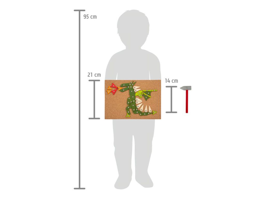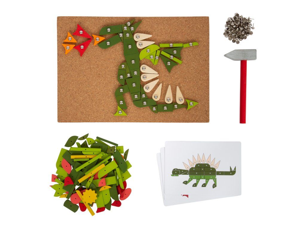 Obsiahla kreatívna hracia sada pre milovníkov prírody! V balení nájdete korkovú podložku, drevené kladivo, pripináčiky a veľa dielikov z laminovaného dreva v rozdielnych tvaroch a farbách. V škatuli, ktorá je vhodná aj na uschovanie tejto hračky, nájdete šesť obrázkových predlôh.Klasická zatĺkacia hra v moderných farbách a nesmrteľnom dizajne, s ktorou si deti môžu vytvoriť obrázky rastlín, dinosaurov či čohokoľvek iného. Môžu sa riadiť obrázkovými predlohami alebo tvoriť podľa vlastnej predstavivosti. Hračka pomáha s rozvojom kreativity, trénuje zručnosť, zlepšuje koordináciu ruka-oko a rozoznávanie farieb a tvarov. Zatĺkacia sada je vhodná pre deti malé aj väčšie. Hlavné vlastnosti: zatĺkacia hra s rozsiahlym výberom motívovdrevené kladivko, pripináčiky, korková podložkadieliky rôznych tvarov a fariebdeti si precvičia motoriku a rozoznávanie tvarov a fariebmoderná farebná schémazlepšuje zručnosť a koordináciu ruka-okoDodatočné parametre