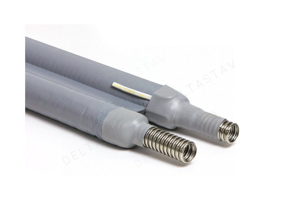 Solárne predizolované nerezové potrubie (vlnovec, dvojrúra) s izoláciou, káblom a čidlom pre solárne médium pre slnečné kolektory.