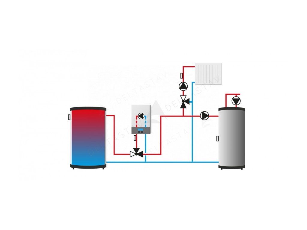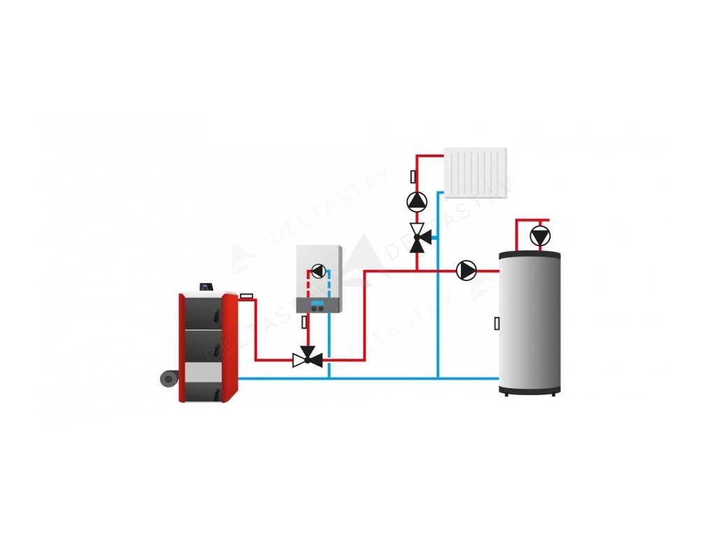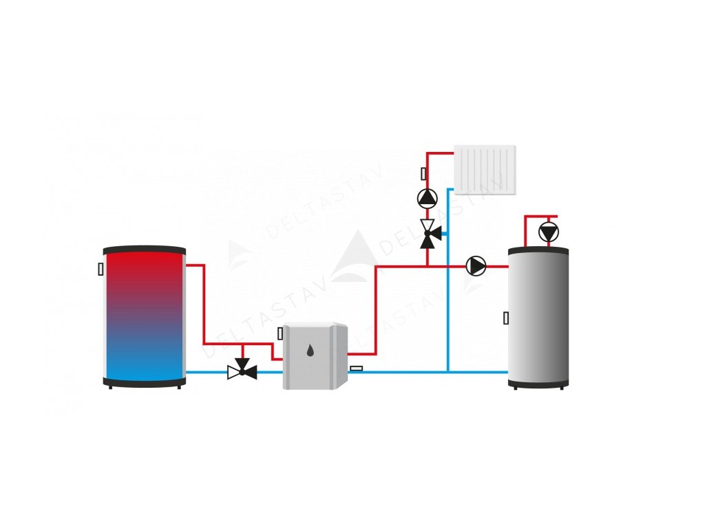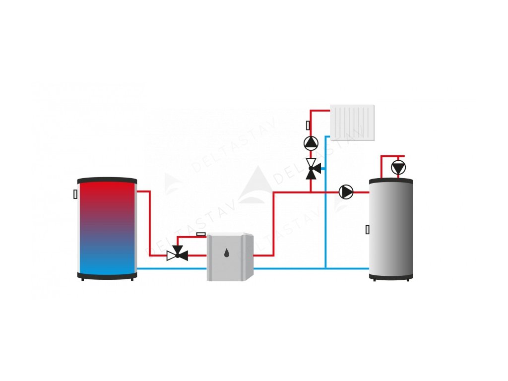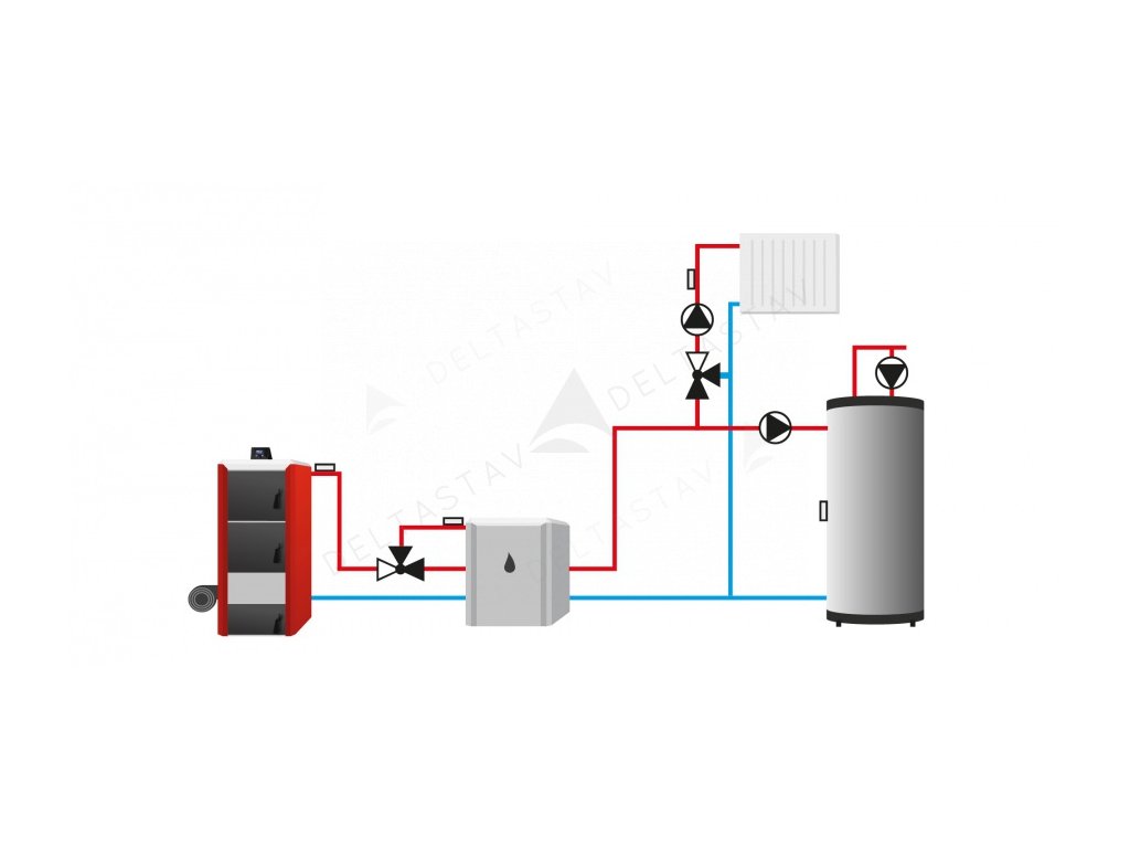 - ochrana pred nežiaducim nárastom teplej vody v krátkom obehu kotla a pred príliš nízkou teplotou vykurovacej vody pri návrate do kotla