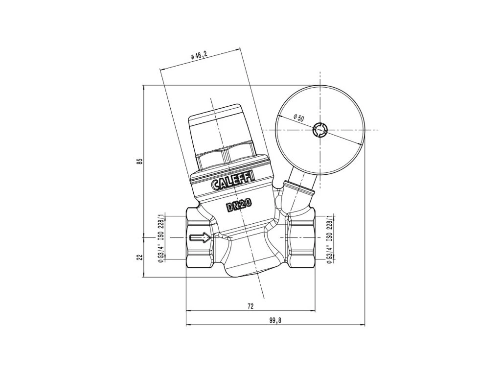 Tlakový redukčný ventil 3/4", PN 16bar, pracovný rozsah 1-5,5 bar, T max.+80 °C, s pripojením 1/4" F na manometer