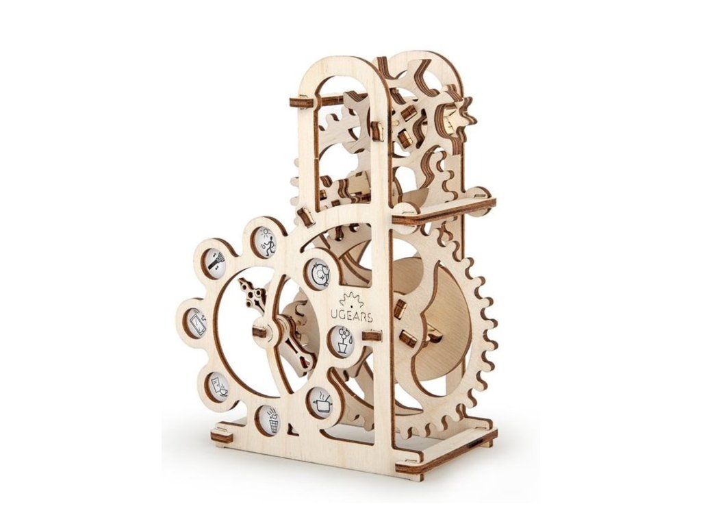 Dřevo a pohyb - jak to jde dohromady? Jednoduše! Mechanický pohyb a tradiční materiál spojují 3D modely UGEARS. Poznejte tajemství převodů, gumičkových motorů, koleček a dalších mechanických součástek! Zábavné skládání bez nutnosti lepení, propracované detaily, hladký provoz a kvalitní zpracování - plně funkční pohyblivé 3D puzzle UGEARS ohromí i toho, kdo neměl fyziku ve škole právě v oblibě. Do detailu propracované dřevěné 3D skládačky ukrajinské značky UGEARS jsou vhodné nejen pro rozvoj motoriky a představivosti, ale jsou i neskutečně zábavné. Díky vysoké kvalitě výroby jsou při správné údržbě modely po sestavení plně funkční a pohyblivé a umožňují tak lépe poznat tajemství mechaniky. Dynamometr (jinými slovy siloměr) je přístroj k měření velikosti síly nebo kroutícího momentu. Model umožňuje pochopit základní principy mechaniky a přibližuje kaskádu převodů a mechanického spojení. Fouknutím na kolečko s lopatkami nebo ručním roztočením ozubeného kola na dynamometru uvidíte, jak celý systém funguje. Šipka skáče z jednoho piktogramu na druhý a zastaví se na úkolu, který byste měli splnit. Pro větší legraci si můžete vyrobit i vlastní piktogramy. 3D puzzle UGEARS jsou opatřeny podrobným obrázkovým návodem. UPOZORNĚNÍ: Pro správné fungování a bezproblémový provoz je třeba součástky, u kterých je to uvedeno v návodu (zejména osy), promazat voskem z obyčejné svíčky, aby byla rotace prováděna s minimálním třením. Vhodné pro stavitele ve věku od 14 let. Rozměr složeného puzzle cca 17 x 14,5 x 7 cmDodatočné parametre