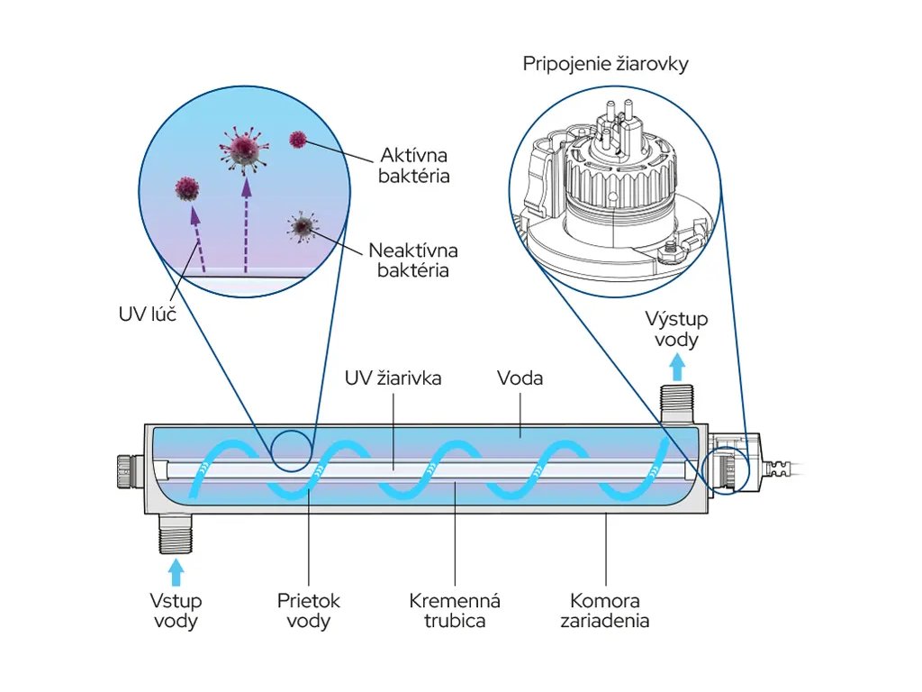 UV lampa na dezinfekciu pitnej vody VIQUA Arros 9 ponúka vysokú účinnosť sterilizácie, jednoduchú inštaláciu a spoľahlivú prevádzku. Využíva ultrafialové (UV) žiarenie na účinné zneškodnenie mikroorganizmov, ako sú baktérie, vírusy, prvoky a iné patogény – bez použitia chemikálií a bez zmeny chuti vody. Je ideálnym riešením pre vodu zo studne aj z vodovodu a zabezpečí čistú, zdravotne bezpečnú pitnú vodu pre celú domácnosť.