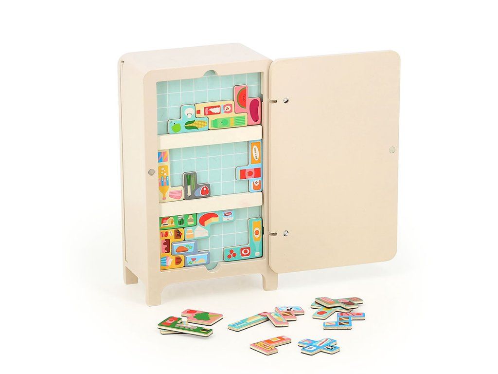 Poškodený obal. Nový tovar bez závad. Táto hra s obrázkami Ingely P. Arrhenius spočíva v skladaní magnetických dielikov, ktoré predstavujú potraviny, správnym spôsobom do priestoru drevenej chladničky. Premýšľanie nad tým, ako všetko čo najlepšie usporiadať, zábavným spôsobom posilní schopnosť riešiť problémy. Dve magnetické lišty umožnia meniť usporiadanie chladničky a priložená brožúra ponúka 7 riešení, ako postupovať. Vďaka manipulácii s magnetickými dielikmi je táto hra ideálna na posilnenie jemnej motoriky a zároveň rozvíja obratnosť, čo je základná zručnosť pre ďalšie učenie. Zábavná a vzdelávacia hra, ktorá rozvíja logické myslenie, motoriku, koordináciu ruka-oko a kreativitu. Hlavné vlastnosti: 1 drevená chladnička, 2 magnetické police, 21 magnetiek potravín, brožúralogická hra pre celú rodinudizajn Ingela P. Arrheniusrozvíja jemnú motoriku, obratnosť a koordináciu ruka-okopodporuje logické myslenie a kreativitu Švédska umelkyňa Ingela Peterson Arrhenius sa narodila v roku 1967. Umenie a dizajn mali vždy miesto v jej živote a ako začala jej kariéra ilustrátorky, Ingela pracovala ako umelecká vedúca v Štokholme. Potom študovala reklamný a grafický dizajn na umeleckej škole tiež v Štokholme. V roku 1992 začala podnikať ako ilustrátorka na voľnej nohe a pracovala medzinárodne naprieč reklamou, dizajnom, nakladateľstvom… V minulosti vytvárala tlačové vzory pre tkaniny, tapety, papiernictva, tiež pracovala na obaloch, produktovom dizajne, bytových doplnkoch a hračkách. Jej plagáty a dizajnové hračky nájdete po celom svete. Má vášeň pre retro štýl, čo je jasne vidieť na jej dielach a tiež v jej nadšeniu pre typografiu a farby. Teraz žije v Štokholme s manželom a 2 synmi.Dodatočné parametre