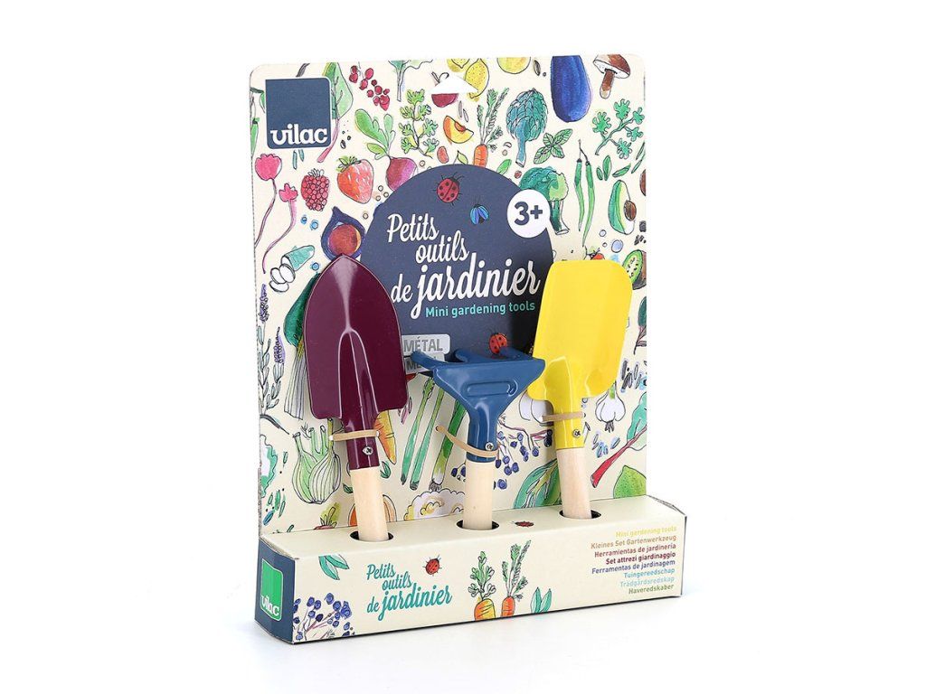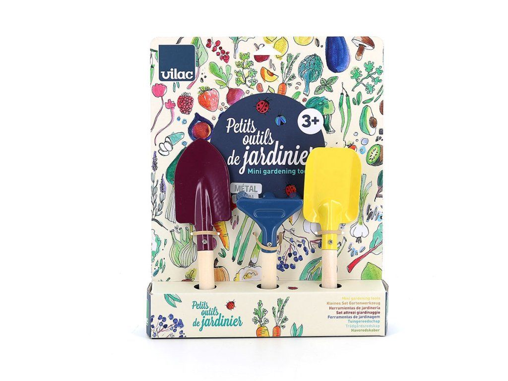Bezpečná súprava náradia na záhradu, ktorá je veľkostne prispôsobená malým detským ručičkám. Sada obsahuje ručné hrable, rýľ a lopatku. Mladí záhradníci ich môžu použiť pri presádzaní kvetov, sadení zeleniny alebo rastlín. Deti sa tak môžu dozvedieť viac o životných cykloch rastlín, úlohe opeľujúceho hmyzu a dôležitosti starostlivosti o Zem. Náradie má pevnú drevenú rukoväť. Hlavné vlastnosti: ideálna veľkosť pre detirozvíja motoriku a vzťah k prírodevyrobené z kovu, drevená násadaDodatočné parametre