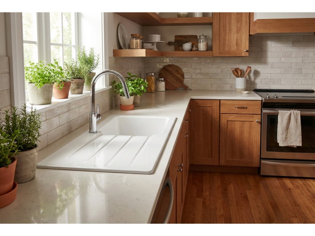 - kvalitný keramický drez vyrobený zo 100% prírodných surovín