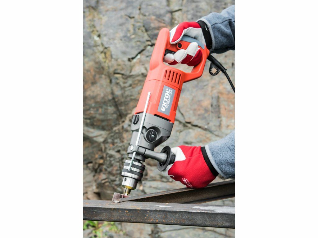 Veľmi výkonná a robustná príklepová vŕtačka so silným motorom je určená najmä pre náročné vŕtacie práce do tvrdých materiálov.- veľmi výkonná dvojrýchlostná vŕtačka, kovové uloženie ložísk a prevodov lepšie odvádza teplo a predlžuje životnosť vŕtačky