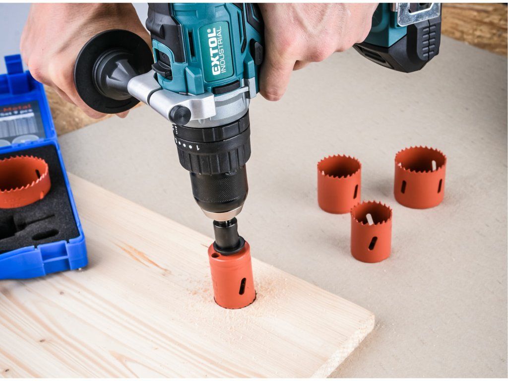 - telo vrtáku z bimetalu so zubami z HSS ocele a bočné otvory pre účinný odvod vŕtaného materiálu