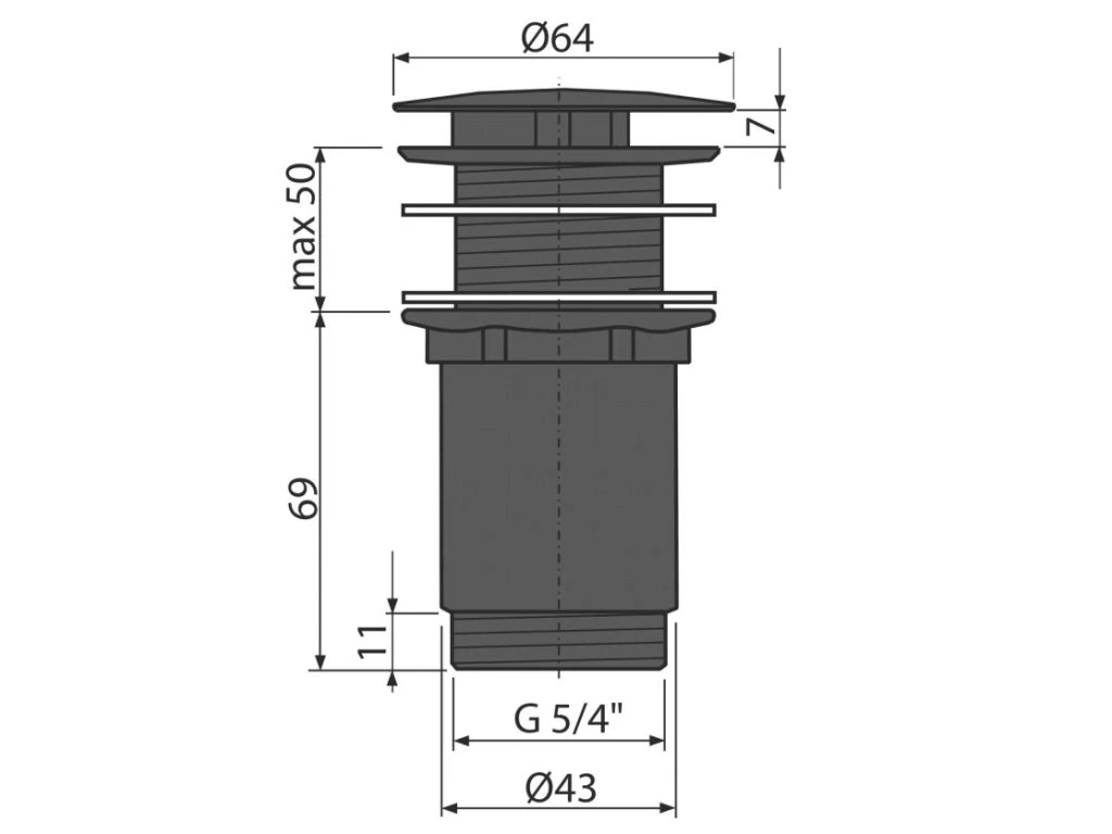 Výpusť umývadlová 5/4" celokovová, veľká zátka, pre umývadlá bez prepadu, čierna-mat