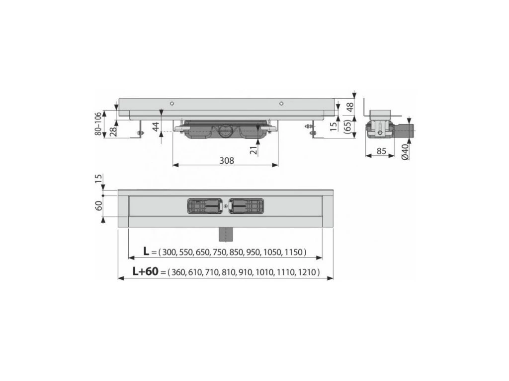<p><strong>Dĺžka: 750mm.</strong></p> <p><strong>Použitie:</strong><br />Na použitie vo vnútri budov<br />Pre odvodnenie spŕch v úrovni podlahy<br />Pre osadenie priamo ku stene<br />Pre plné rošty, pre rošty FLOOR na vloženie dlažby a pre hranolové rošty GAP<br />Pre bezbariérový prístup</p> <p><strong>Vlastnosti:</strong><br />Podlahový žľab z nerezovej ocele (zušľachtenie materiálu morením a pasiváciou, elektrochemické preleštenie)<br />Pre vkladanie plných roštov – nerez, kalené sklo, syntetický kameň, roštu pre vloženie dlažby a hranolového roštu<br />Stavebná výška od 65 mm<br />Výškovo nastaviteľný<br />Sifón napevno spojený so žľabom – 100% vodotesnosť<br />Samolepiaca páska pre kvalitnú hydroizoláciu<br />Mechanicky čistiteľný sifón až po odpadovú trubku<br />Límec a vpusť sú chránené fóliou, vanička polystyrénovou vložkou<br />Vysoký prietok je umožnený vďaka dvom komorám sifónu<br />Záruka 25 rokov<br />Materiál žľabu: nerezová oceľ 2 mm AISI 304, DIN 1.4301<br />Materiál sifónu: polypropylén</p> <p><strong>Rozsah dodávky:</strong><br />Žľab zmontovaný so sifónom<br />Kotviaci set: vrut Ø6×50 mm – 2 ks, hmoždinka Ø10 mm – 2 ks, vrut Ø4,2×38 mm – 3 ks, hmoždinka Ø8 mm – 3 ks<br />Samolepiaca hydroizolačná páska<br />Ochranná fólia goliera žľabu a vtoku do sifónu<br />Inštalačný kryt koryta - polystyrén</p> <p><strong>Technické parametre:</strong><br />Zápachová uzávera 28 mm<br />Prietok 35l/min<br />Odolnosť zápachovej uzávery proti tlaku 575 Pa<br />Odpadové potrubie priemer 40 mm<br />Minimálna hrúbka betónu 65 mm<br />Celková stavebná výška 80 - 106 mm<br />Trieda zaťaženia K3 300 kg</p> <p><strong>Normy: EN 1253.</strong></p>Buďte prvý, kto napíše príspevok k tejto položke.