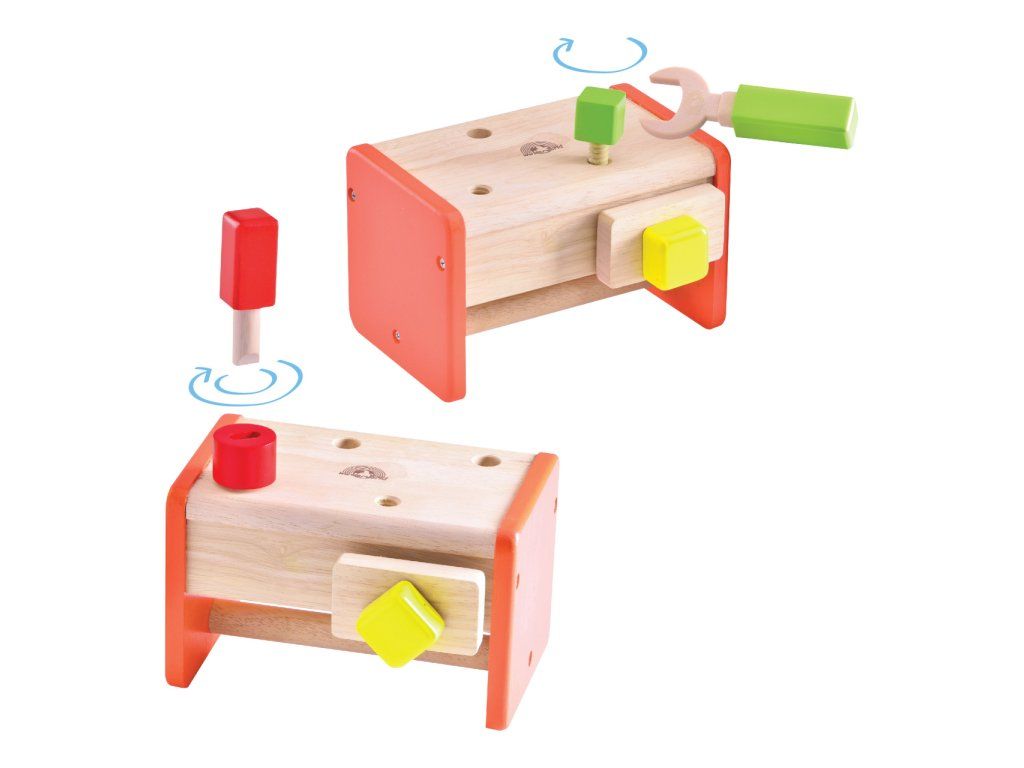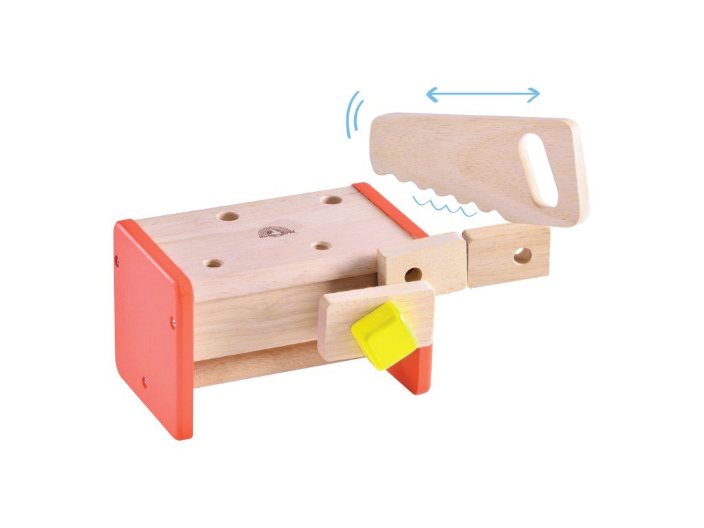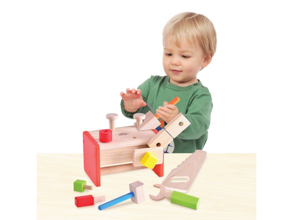 Podporte v rozvoji svojho malého domáceho majstra pomocou premyslenej súpravy náradia. Náradie je dodávané v praktickej debničke s madlom, ktorá sa po otočení premení na dielenský stôl vybavený zverákom. Deti sa s pomocou tejto hračky môžu naučiť základným manuálnym schopnostiam, použitiu kľúča, kladivka alebo páky. Vďaka premyslenému návrhu sa tiež naučia triediť veci podľa účelu a Vy vďaka nemu ušetríte miesto. Hračka je vyrobená z detailne opracovaného, odolného masívneho dreva a drevoplastu, pritom atraktívne spája prírodné a sýte farebné odtiene. Hlavné vlastnosti:debnička vybavená zverákom, 5 dielov náradia, 6 dielov príslušenstvaodolné drevené prevedenievycibrená farebnosť a povrchová úpravaDodatočné parametre