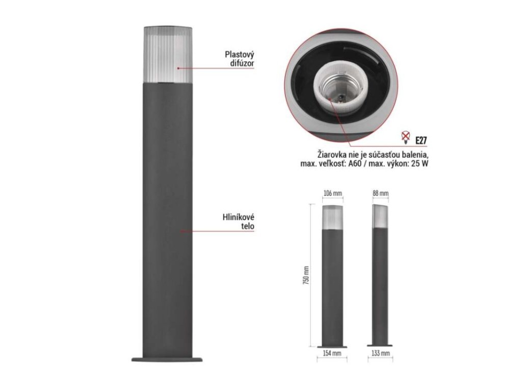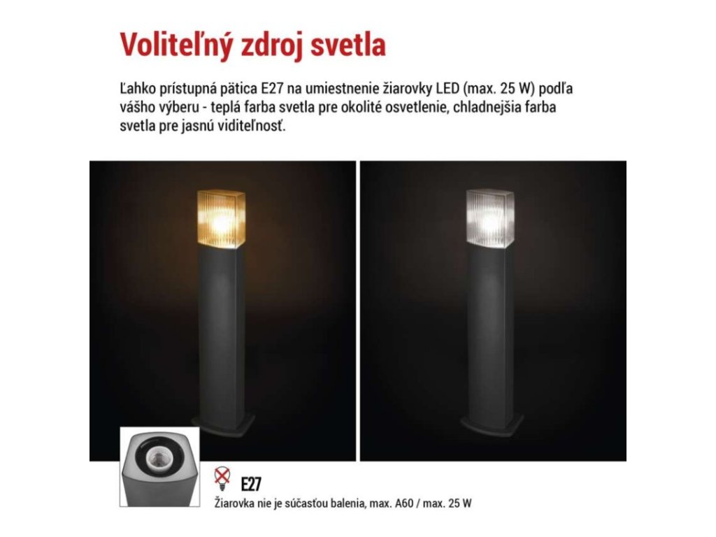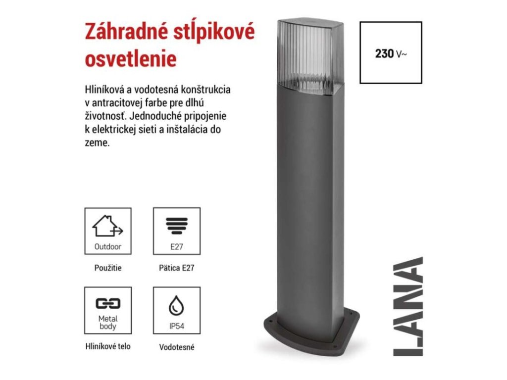Záhradné stĺpikové svietidlo LANA, 15,4 x 13,3 x 75 cm, 1 x E27, 25 W