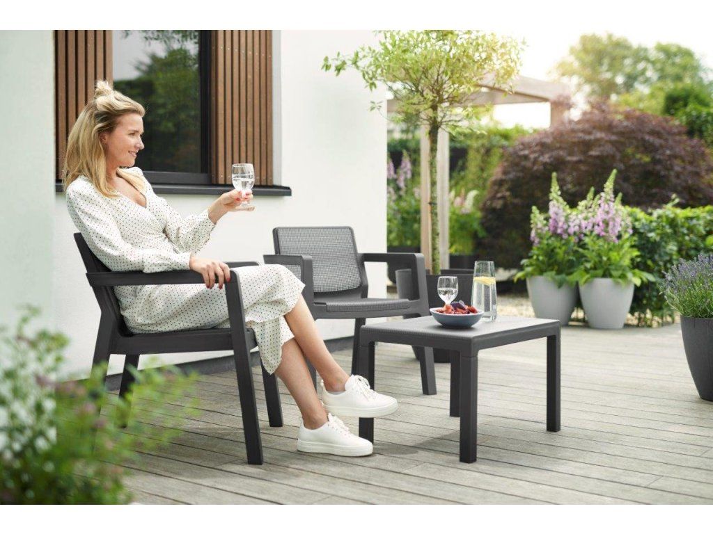Grafitovú sadu si jednoducho zamilujete. Dve kresielka a stolík z rovnakej kolekcie pozdvihnú look vašej terasy aj dvora. Zostavenie je vďaka moderným technológiám veľmi jednoduché, nie je potrebné žiadne náradie a všetko zvládnete za 5 minút.