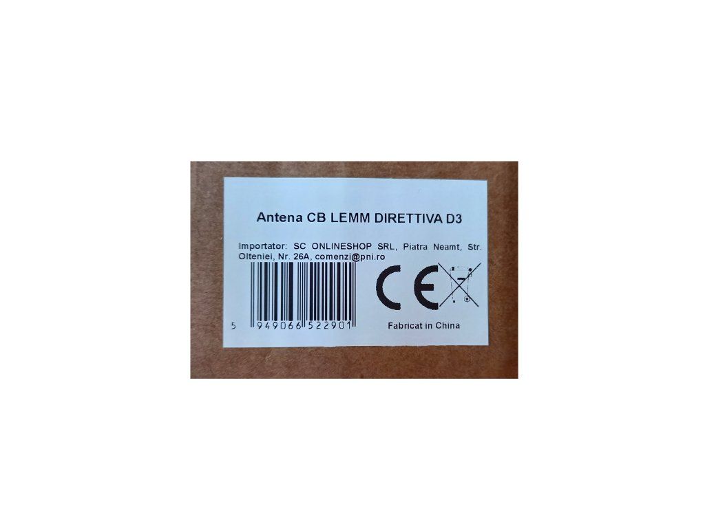Základná CB anténa LEMM DIRECTIVE D3, 3 prvky, 26-30 MHz, 1200W, zisk 9dB, dĺžka 270 cm, odolnosť proti vetru 150km/h, vyrobené v Taliansku