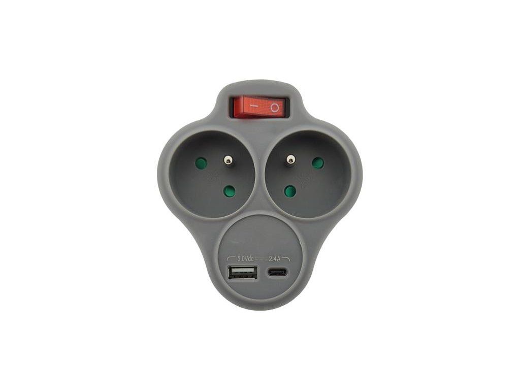Adaptér s nabíjačkou USB 2x2P+E 1x USB-A / 1x USB-C