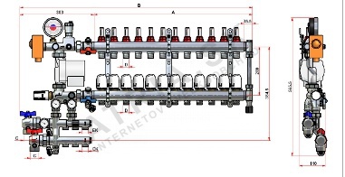 - univerzálna zostava pre kombináciu podlahového vykurovania s radiátorovým a s integrovaným trojcestným zmiešavacím ventilom