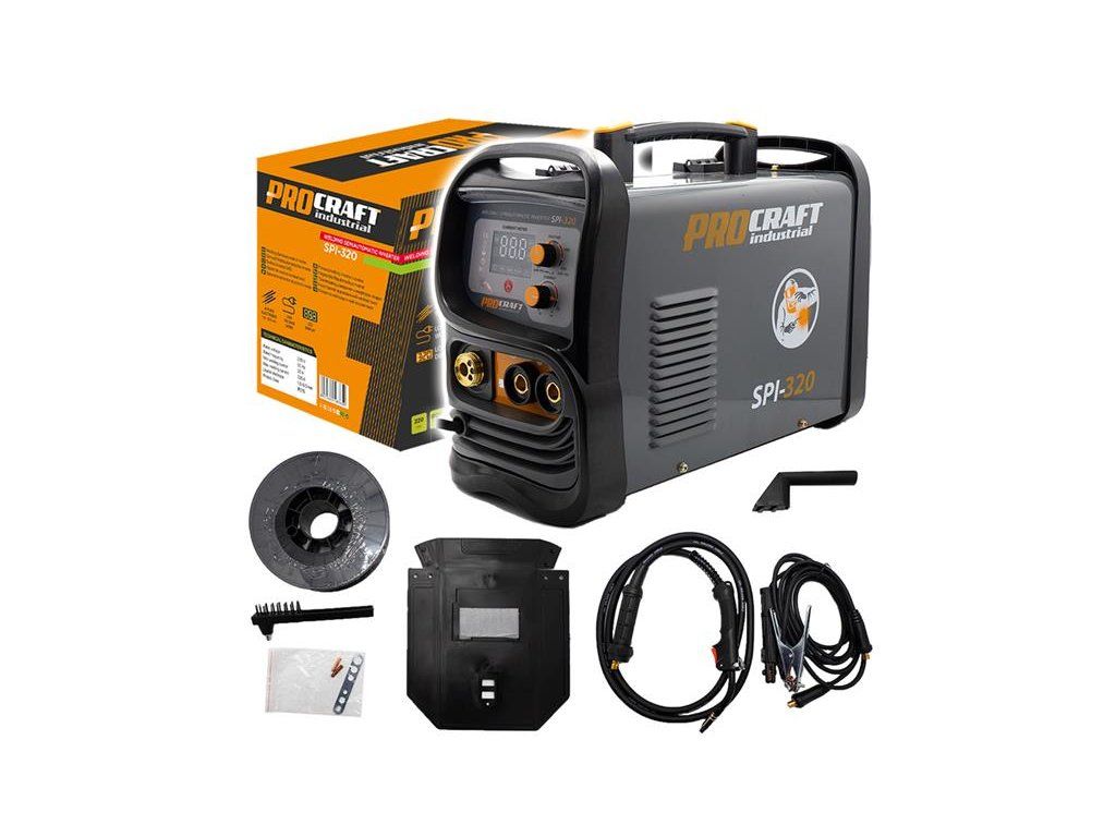 Zvárací invertor Procraft SPI-320 je určený na ručné zváranie metódami MIG a MAG. Výkonové tranzistory IGBT zaručujú dlhú bezporuchovú prácu. Regulácia zváracieho prúdu v rozsahu 20-160 A umožňuje nastavenie optimálnych parametrov pri práci s rôznymi kovmi. Je možné použiť zvárací drôt s priemerom 0,6 až 1,0 mm. umožňuje zváranie s inertnými alebo aktívnymi plynmi. Pomocou LCD Displeja je zobrazovaný aktuálny zvárací prúd. Súčasťou dodávky je zvárací drôt 0,8 mm (5 kg bubon), MIG horák s káblom, zváračský štít, kábel s držiakom elektród, kábel so uzemňovacími kliešťami a drôtená kefa kombinovaná s kladivom na trosku.